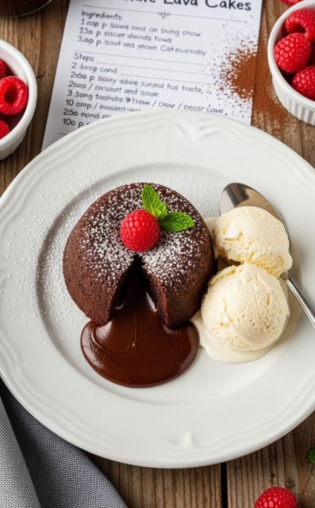 How do I know when the lava cakes are done without cutting them open? Look for edges that are set and slightly pulling away from the ramekin walls, while the very center still has a visible jiggle when shaken. That jiggle is your molten lava — it will firm up slightly during the one-minute rest but stay beautifully flowing when served.